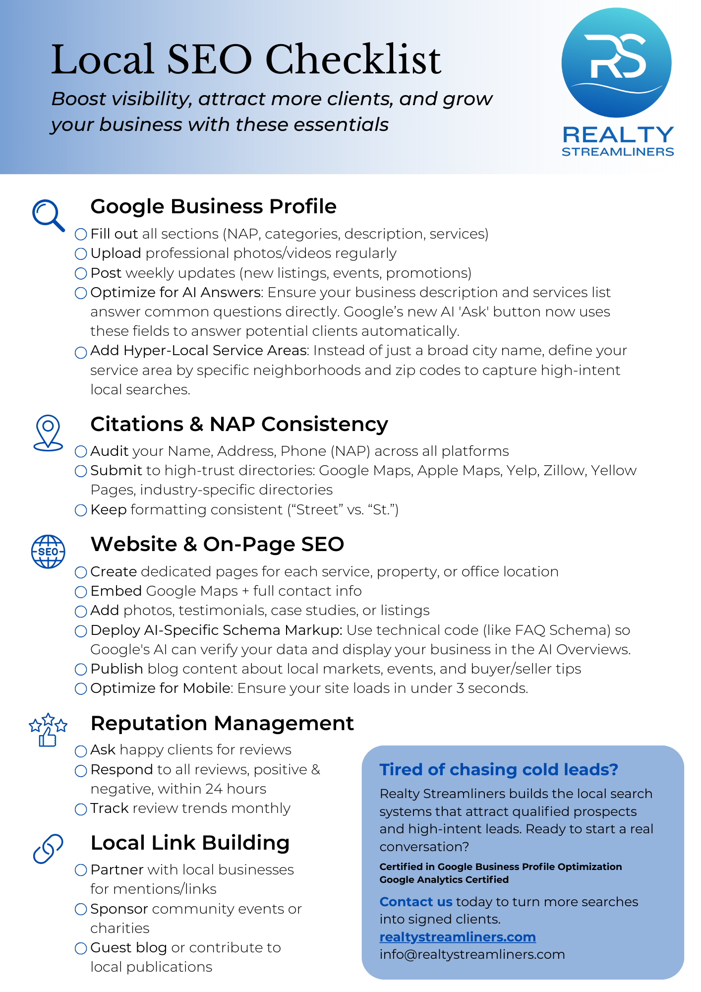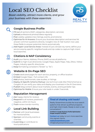 “Realty Streamliners has been instrumental in transforming my business. They did an incredible job with SEO, blogs, and SOPs, turning my ideas into a cohesive system that actually works. Their client-facing materials are impeccable. Patient, kind, and resourceful. I’m a fan for life.”